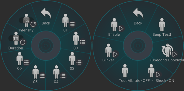 - Bug Note: Recently found out, VRCOSC sees the default 1% of Intensity/Duration on first launch, you will have to change and return your Intensity/Duration hand radials for VRCOSC to accurately know.